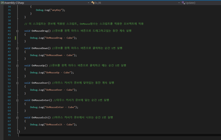 Cube에 Ex_06스크립트를 사용하였습니다.