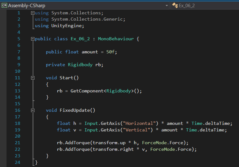 float h = Input.GetAxis("Horizontal") * amount * Time.deltaTime; 이 부분에서