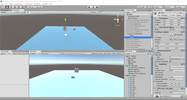 이번 예제는 간단하게 3D Object인 Plane과 Cube를 사용하였으며