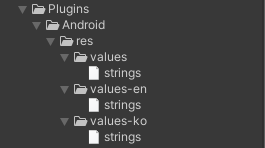 ex) values-en 폴더 생성 -> string.xml 생성 => 언어가 en일 경우 values-en안에 string.xml에 있는 app_name이 앱 이름으로 적용됨