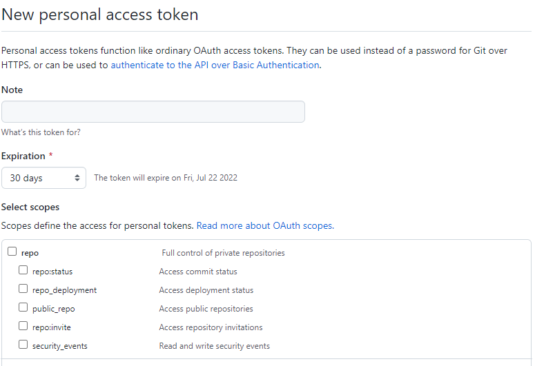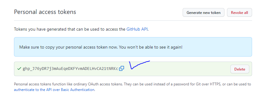 Generate new token을 통해 만들어 줘야함