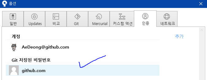 Sourcetree - 도구 - 옵션 - 인증에 들어간 뒤