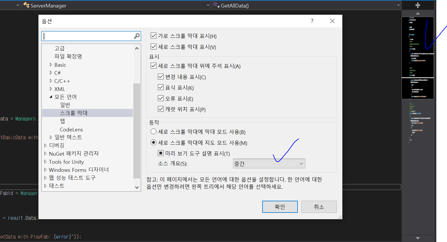 1. 스크롤 막대 옵션
