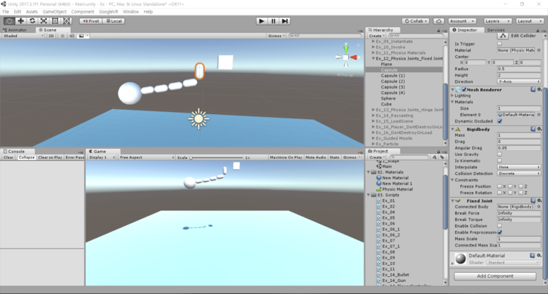 Fixed Joint는 게임 오브젝트를 Rigidbody를 가지고 있는