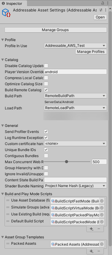 그으으런데 이 상황들을 보려면 반드시 AddressableAssetSettings - General에서