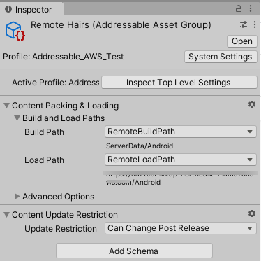 그 뒤에 AddressableAssetSettings도 바꿔줘야 한다.