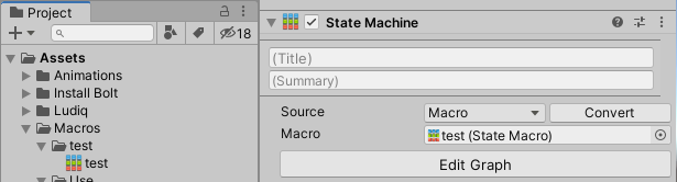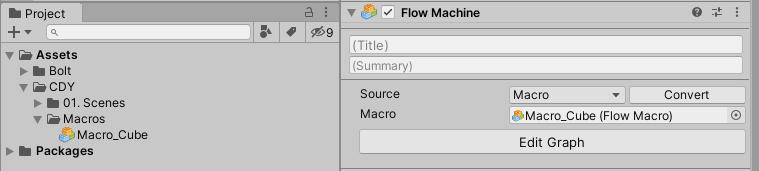 [Project에서 만든 Macro를 누른 뒤 Inspector 창에 나오는 Edit Graph를 클릭하여 그래프를 수정할 수도 있음]