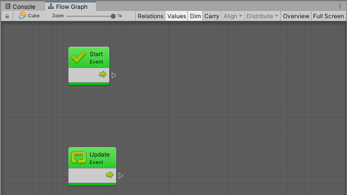 - 2개의 모니터로 작업할 때 Script를 아예 사용 안 하고 Flow Graph만 사용 시 한 모니터에 Flow Graph를 두면 크게 볼 수 있어 좋겠지만 1개의 모니터여도 본인에게 맞는 Layout을 설정하고 위 Flow Graph의 빈 곳을 더블 클릭하면 Flow Graph window가 전체 화면으로 전환되니 모니터가 1개 더라도 작업하기에 큰 문제가 없음