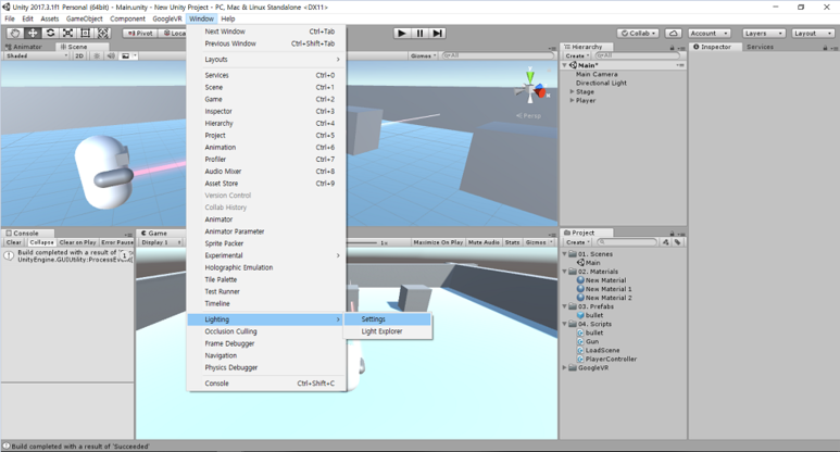 Project 란에 Lighting Data가 생긴 걸 확신하실 수 있으며 유니티 Game 뷰 상에서도 아무 문제 없이 실행되는 것을 확인하실 수 있습니다.