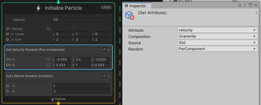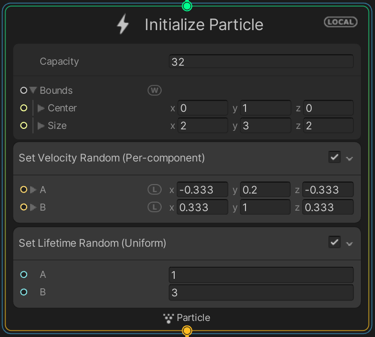- Block : VFX Graph에서 Default로 생성된 box안에 있는 것들