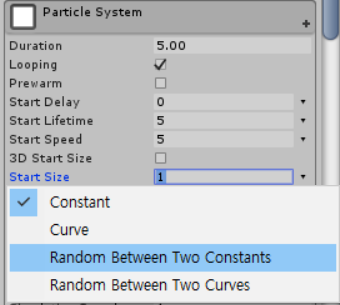 Particle의 사이즈를 Random 하게 만들기 위해 Start Size에서