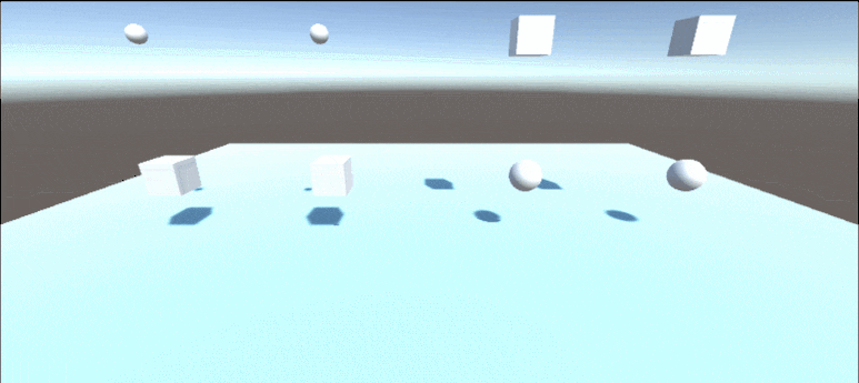 4의 경우 Cube는 중력에 의해 아래로 떨어지게 되고 아래에 있는 Sphere에 충돌하게 됩니다.