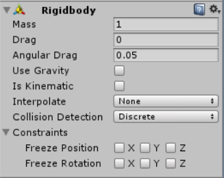 Mass(질량) - 오브젝트와의 충돌을 처리하는 방식에 영향을 줍니다.