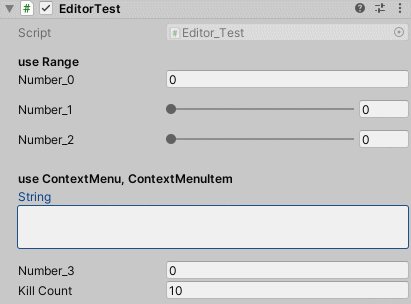[AddComponentMenu ("A_CustomAddComponent/EditorTest")] // Component에 Script에서만 script찾지말고 따로 Menu만들어서 넣어 둘 수 있음